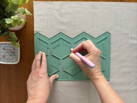 A signature feature of SEW * HARMONY's quilting stencils is the custom cut-out top edge. This incredible feature ensures consistency when marking the individual rows of pattern.