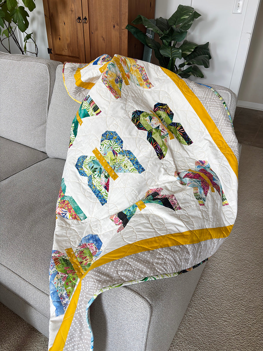 This gentle looping design provides an open density of quilting ensuring your end project is extra comfy and snuggly. Loops also can help visually soften a patchwork project that has a lot of square or angular lines.